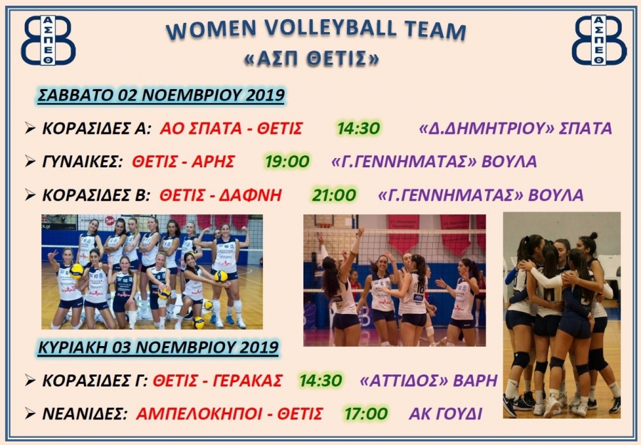 - Volley League Γυναικών: Α.Σ.Π. Θέτις - Πανιώνιος Betsson 3-1