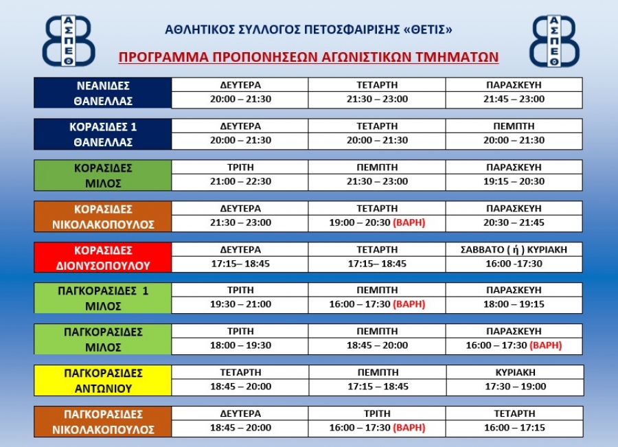 ΠΡΟΓΡΑΜΜΑ ΠΡΟΠΟΝΗΣΕΩΝ ΤΩΝ ΑΓΩΝΙΣΤΙΚΩΝ ΤΜΗΜΑΤΩΝ