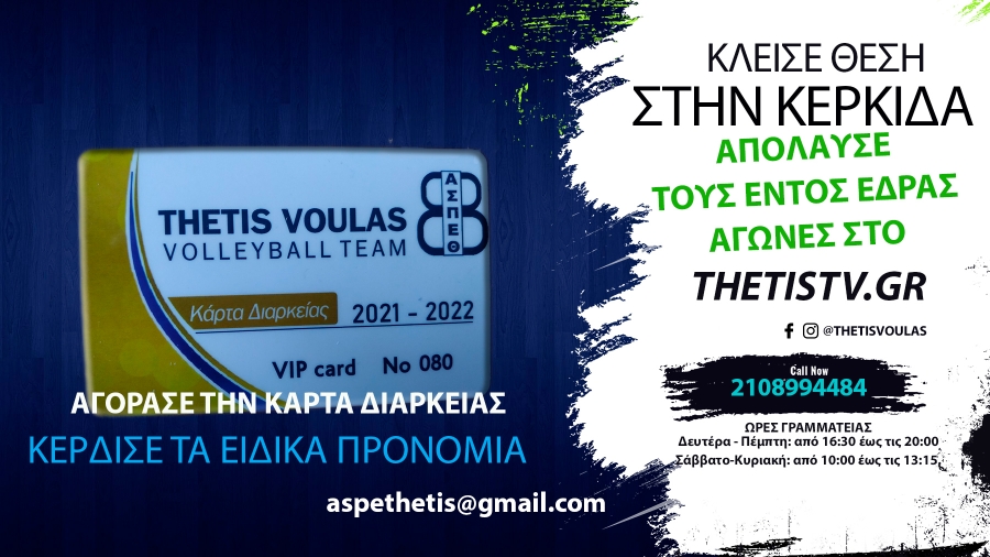 Οι κάρτες διαρκείας ΘΕΤΙΣ ΒΟΥΛΑΣ 2021-2022 είναι γεγονός!