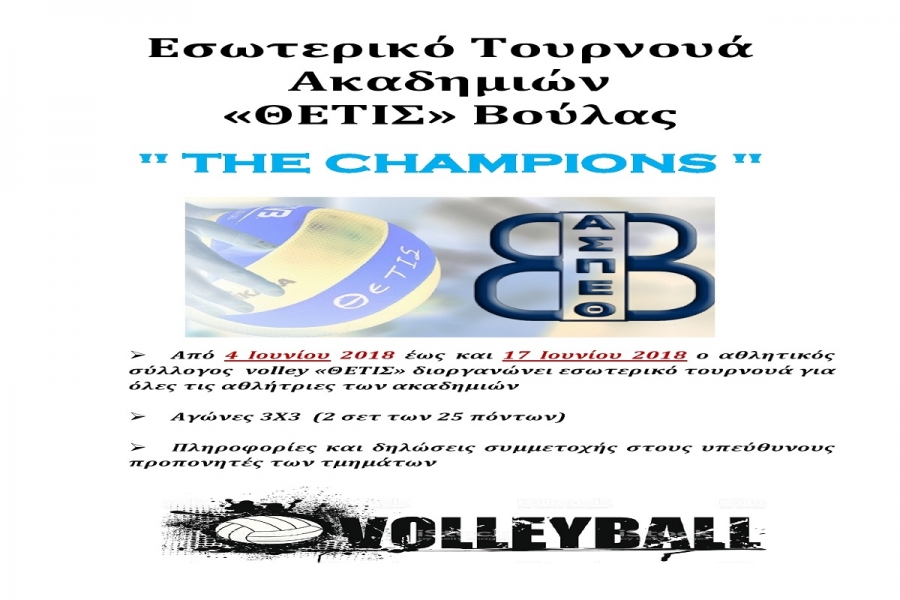 Εσωτερικό Τουρνουά για όλες τις αθλήτριες των Ακαδημιών διοργανώνει από 4 Ιουνίου 2018 έως και 17 Ιουνίου 2018 ο σύλλογος μας.