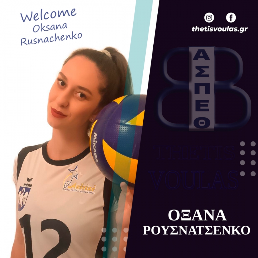 Ο Α.Σ.Π.Θέτις Βούλας ανακοινώνει με ιδιαίτερη χαρά την έναρξη της συνεργασίας του με την Ουκρανή πασαδόρο Οξάνα Ρουσνατσένκο (1.83, 30/7/1993). Τη σεζόν 2020-2021 αγωνίστηκε με την ομάδα της Kuanysh στο πρωτάθλημα του Καζακστάν.