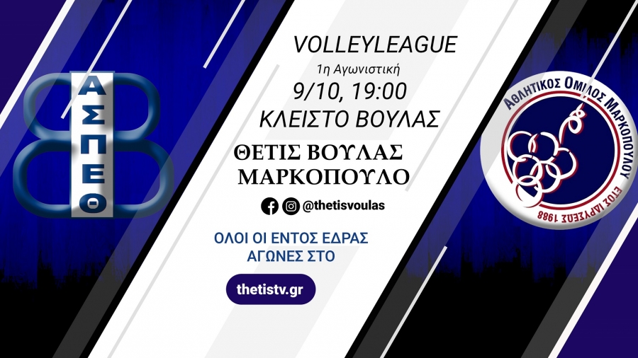 Πρεμιέρα με Μαρκόπουλο η Θέτιδα (9/10, 19:00)