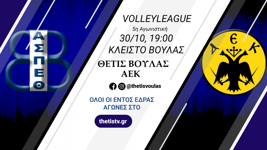 Volleyleague: Θέτις Βούλας - ΑΕΚ (30/10, 19:00 - thetistv.gr)