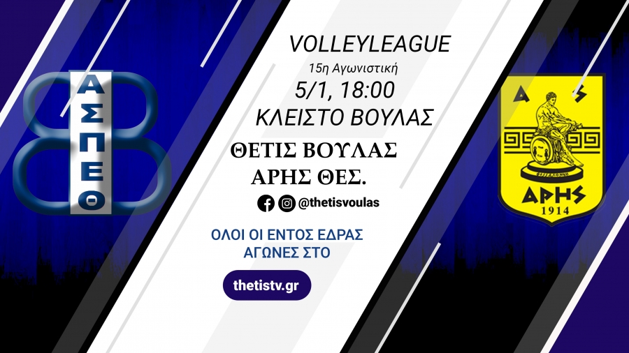 Volleyleague: Θέτις Βούλας - Άρης Θ. (5/1, 18:00)