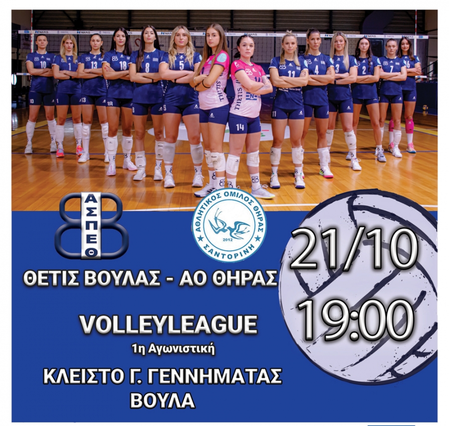 Volleyleague: Α.Σ.Π.Θέτις Βούλας - ΑΟ Θήρας (21/10, 19:00)