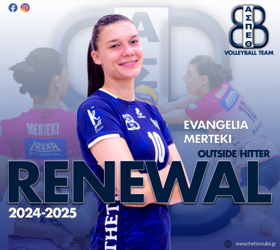 Ο Α.Σ.Π. Θέτις Βούλας βρίσκεται στην ευχάριστη θέση να ανακοινώσει την ανανέωση της συνεργασίας του με την αθλήτρια Ευαγγελία Μερτέκη για την σεζόν 2024-2025.