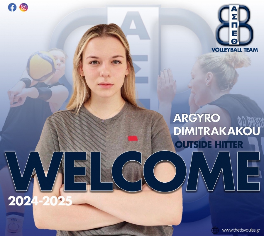 Ο Α.Σ.Π. Θέτις Βούλας ανακοινώνει την έναρξη της συνεργασίας του με την αθλήτρια Αργυρώ Δημητρακάκου, η οποία εντάσσεται στο δυναμικό της γυναικείας ομάδας μας για την σεζόν 2024-2025.